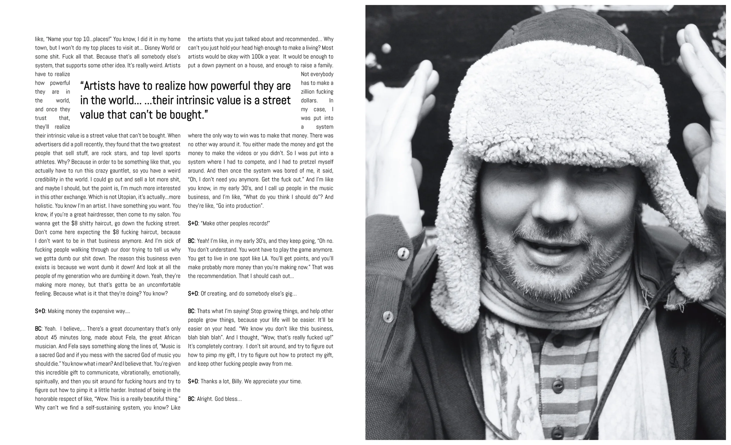 Editorial layout designs for Sex+Design Magazine, issue Brave New World, published in July of 2013; including Feature Article: Rage Against the Machine, an interview with Billy Corgan.
