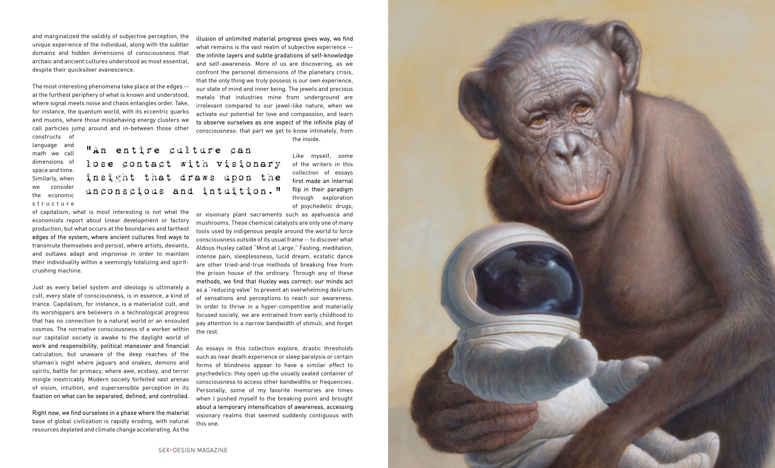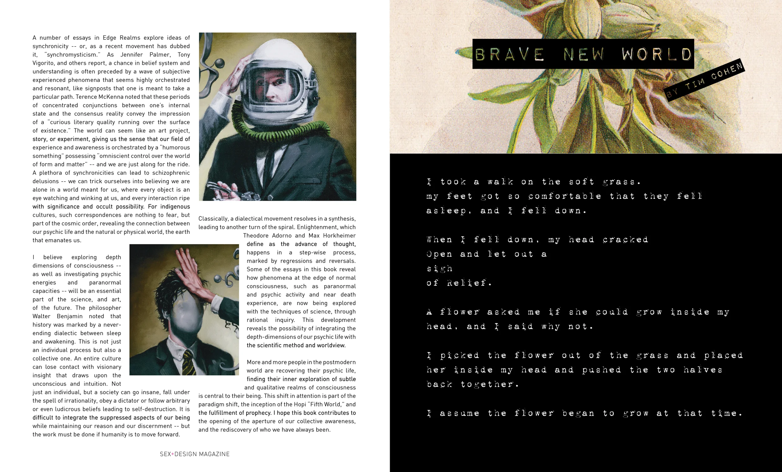 Editorial layout designs by Erin Rose Opperman for Sex+Design Magazine, Brave New World, published in July of 2013.